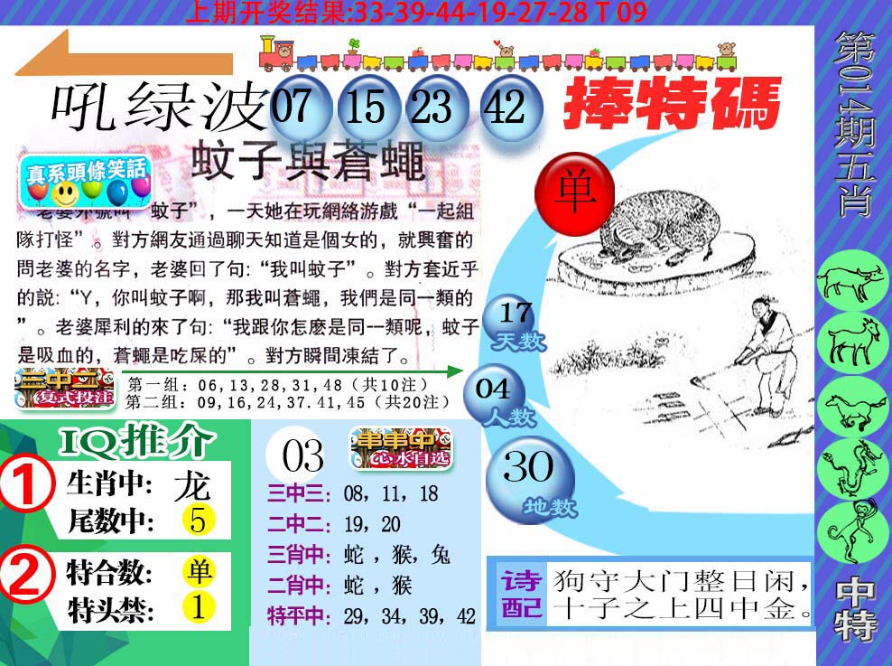 014期:必中⑥肖:兔鸡虎蛇龙牛稳准狠